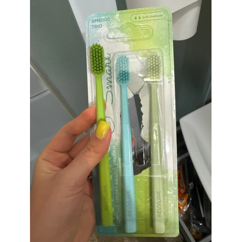 Заказала зубные щетки Revyline для детей. По рекомендации стоматолога, нам посоветовали эту фирму. Щетка средней жёсткости. Компактная головка щётки, закруглённая форма.